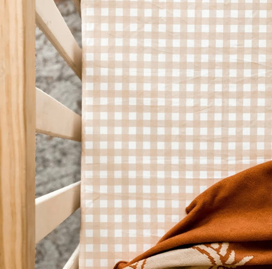 Sand Gingham Fitted Cot Sheet
