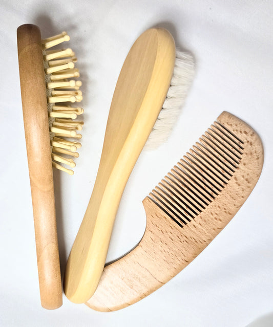 Wooden Brush & Comb 3pc Set