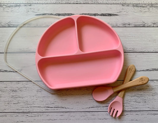 Silicone Plate + Lid and cutlery set